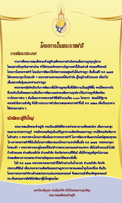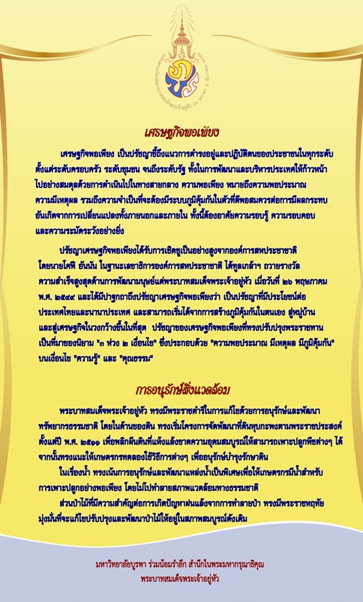นิทรรศการเย็นศิระเพราะพระบริบาลเทิดพระเกียรติ พระบาทสมเด็จพระเจ้าอยู่หัว มหาวิทยาลัยบูรพา 5 ธันวาคม 2556