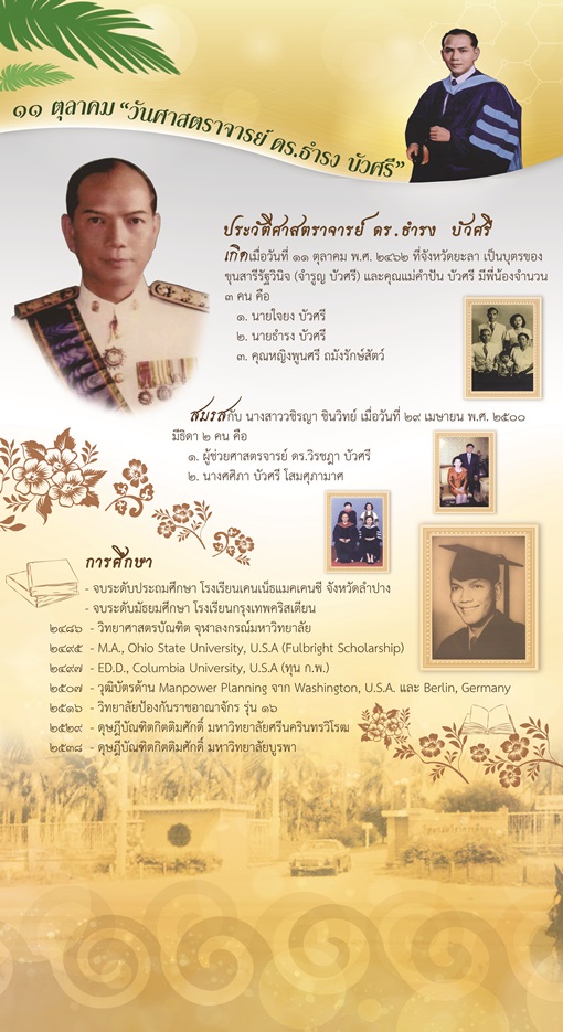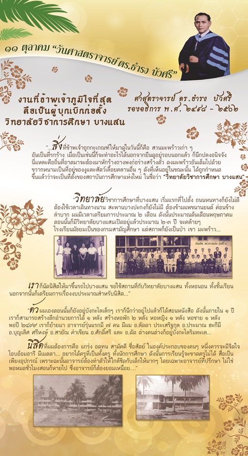 ๑๑ ตุลาคม “วันศาสตราจารย์ ดร.ธำรง บัวศรี”
