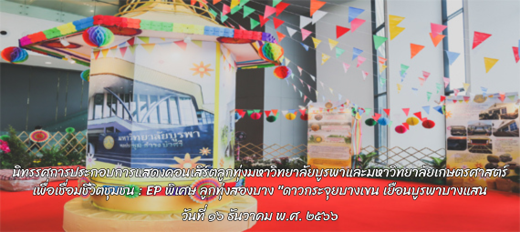 นิทรรศการประกอบการแสดงคอนเสิร์ตลูกทุ่งมหาวิทยาลัยบูรพาและมหาวิทยาลัยเกษตรศาสตร์เพื่อเชื่อมชีวิตชุมชน : EP พิเศษ ลูกทุ่งสองบาง “ดาวกระจุยบางเขน เยือนบูรพาบางแสน